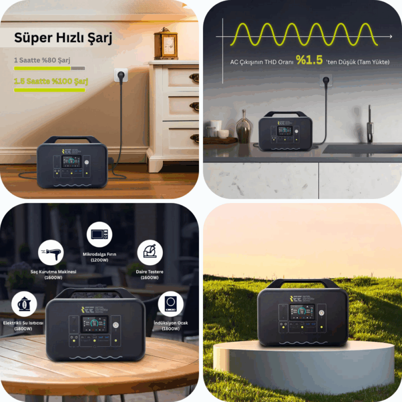 - 1000W Sürekli Güç Çıkışı: 2000W’a kadar anlık yükleri sorunsuz bir şekilde desteklersiniz.