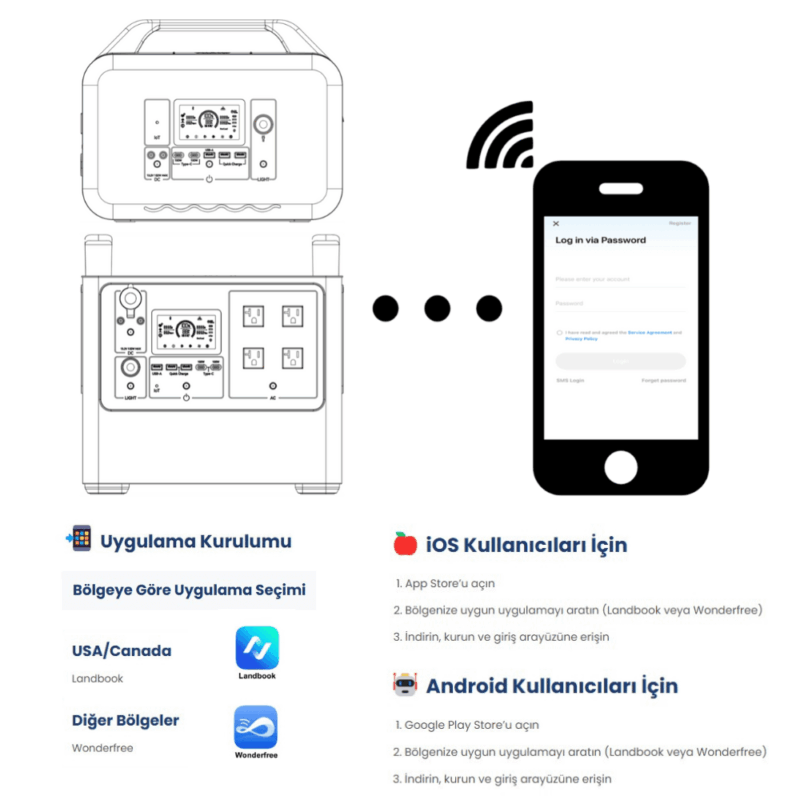 Ayrıca cihaza ait mobil uygulama ile güç kaynağınızı dilediğiniz yerden kontrol edin! Cihaz durumunu anlık olarak takip edin, manuel veya otomatik ayarlamalar yapın ve şarj seviyesini kolayca görüntüleyin. Gücünüz her an elinizin altında!